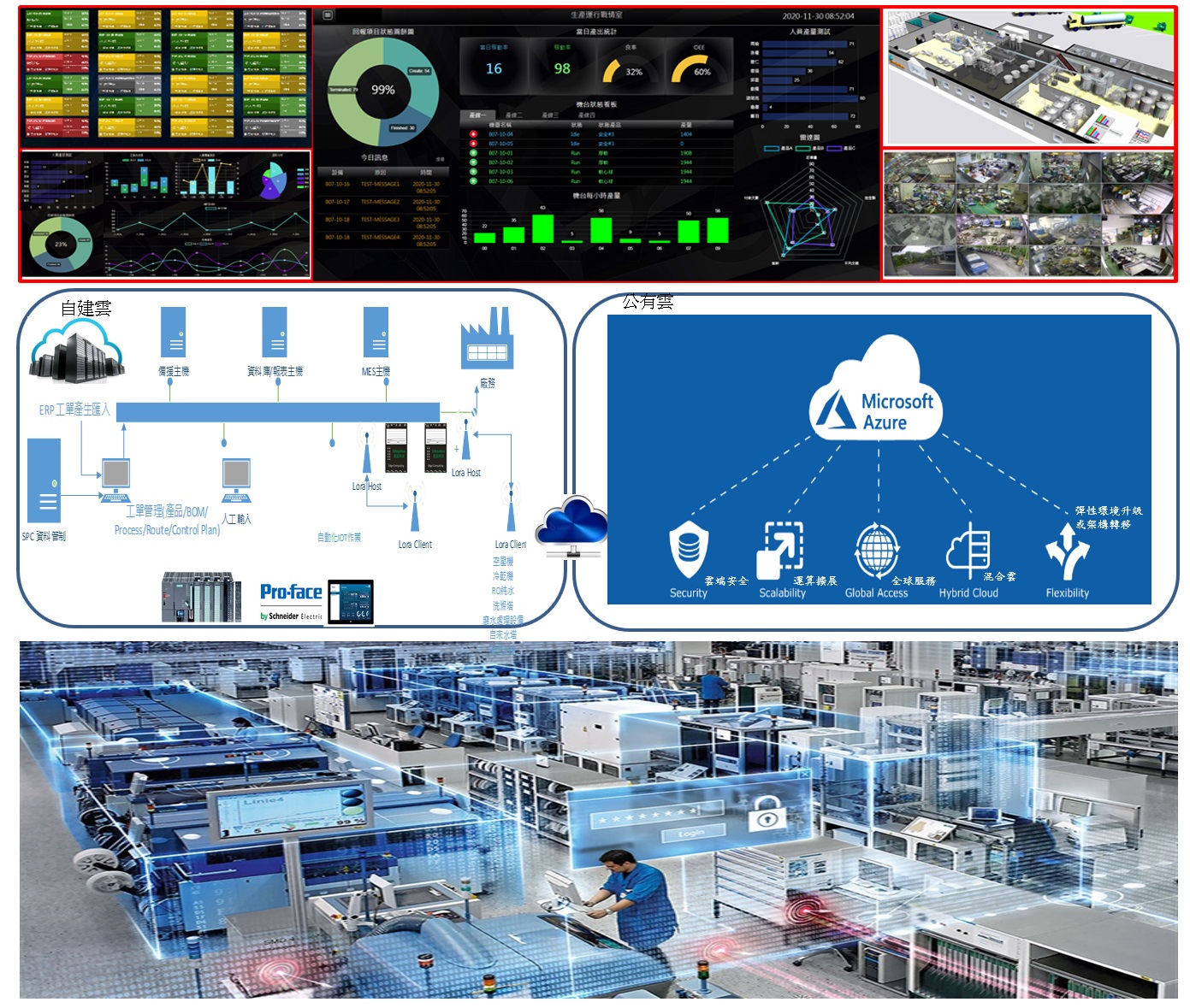 運用雲端架構與物聯網技術,結合簡潔與現代化戰情中心看板設計,從訂單、原物料供應投入、有效監控生產、設備、製程、庫存、廠務系統、產品營銷,達到營運最佳化管理。 讓台灣的中小型企業進入數位化供應鏈。